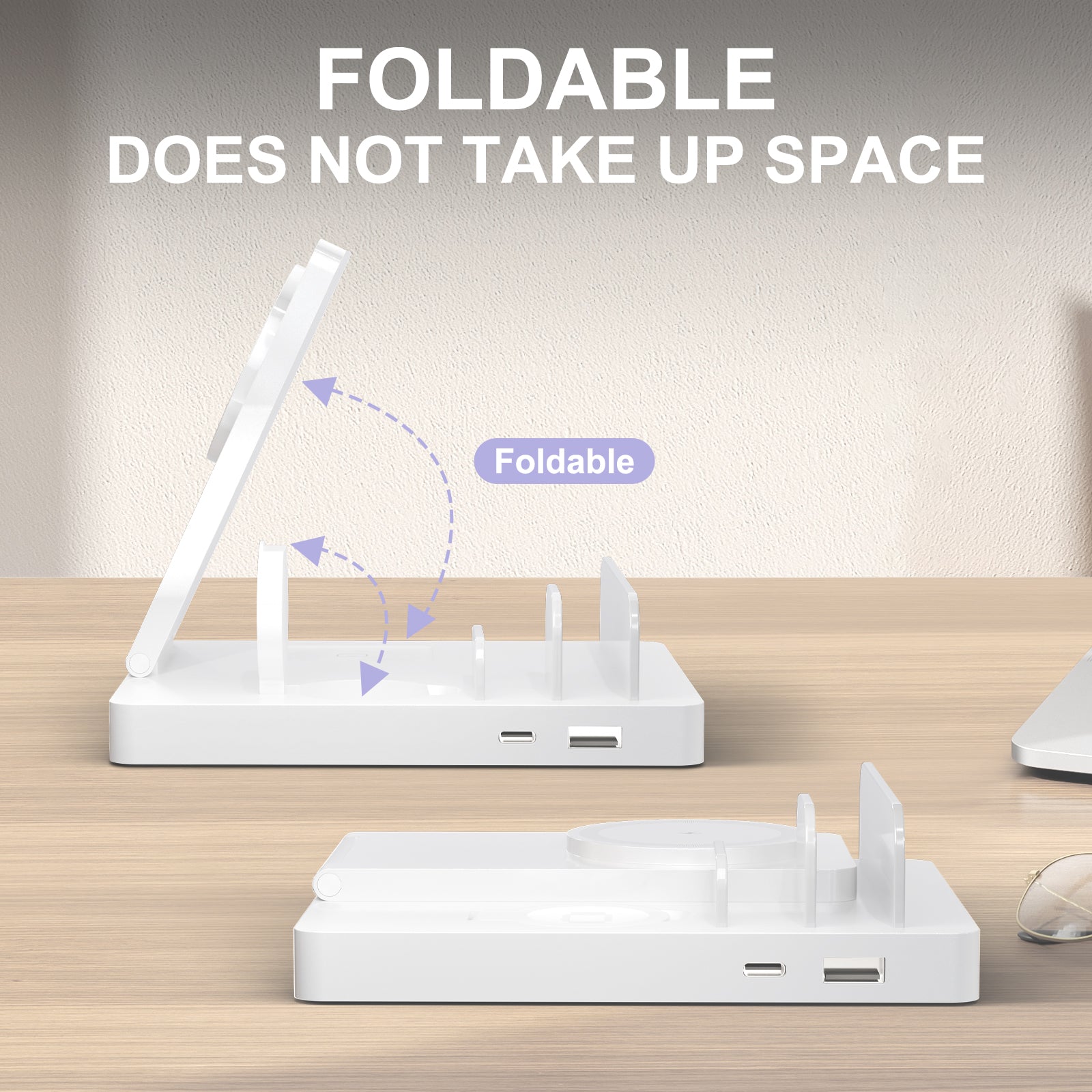 ??¡¾5 in 1 Charging Station¡¿Wirelessly powers your phone, earbuds, and smartwatch; plus 2 USB ports for iPads and additional phones. Charges all your devices in one convenient place, compatible with most Qi-enabled gadgets.