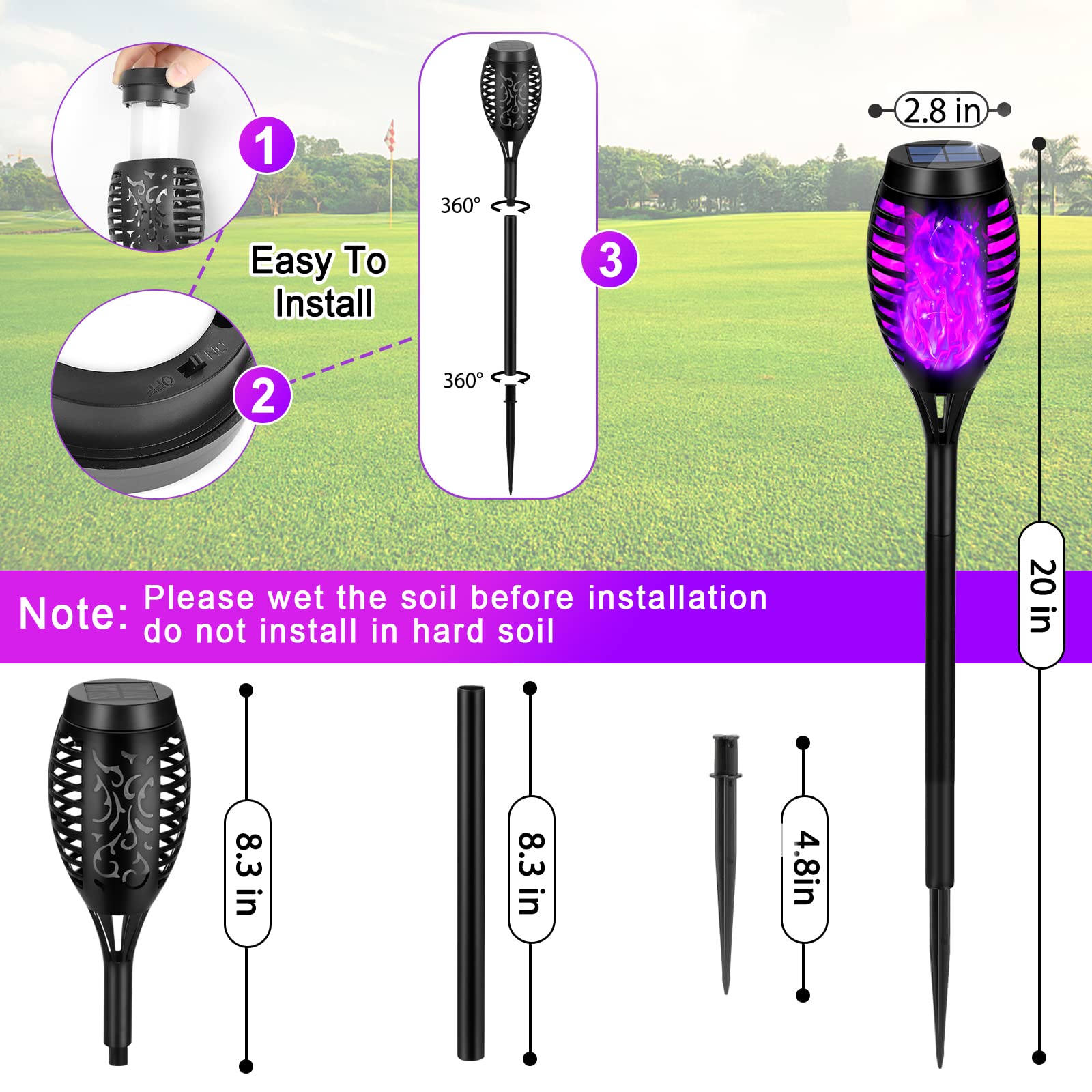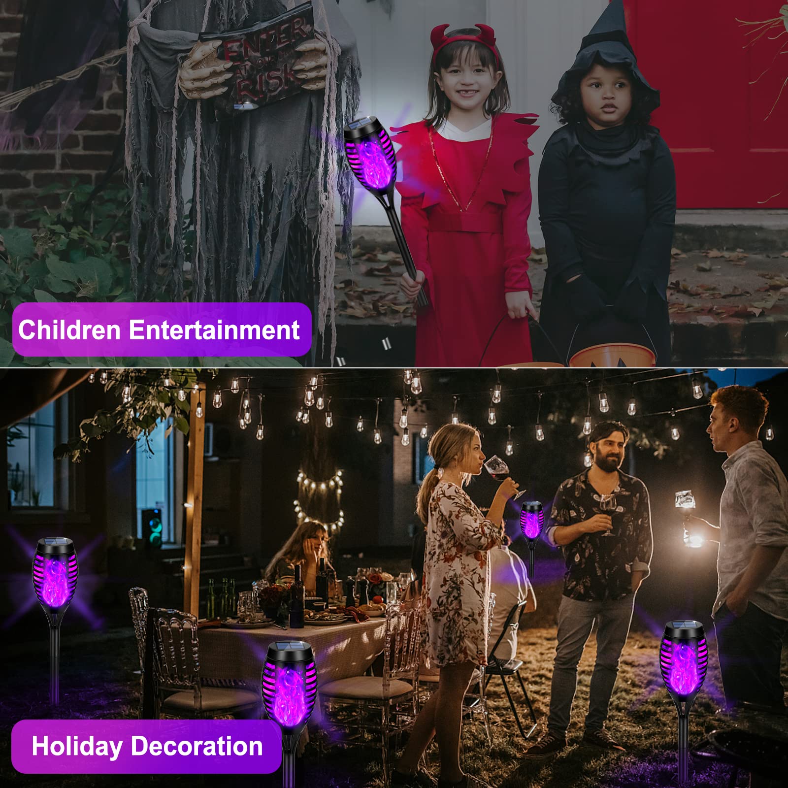 8 Packs Solar Tiki Torch Lights with Flickering Flame, Waterproof H-alloween Solar Lights Outdoor, Solar H-alloween Pathway Lights, H-allowee Decor Lights for Garden, Lawn, Patio, Yard