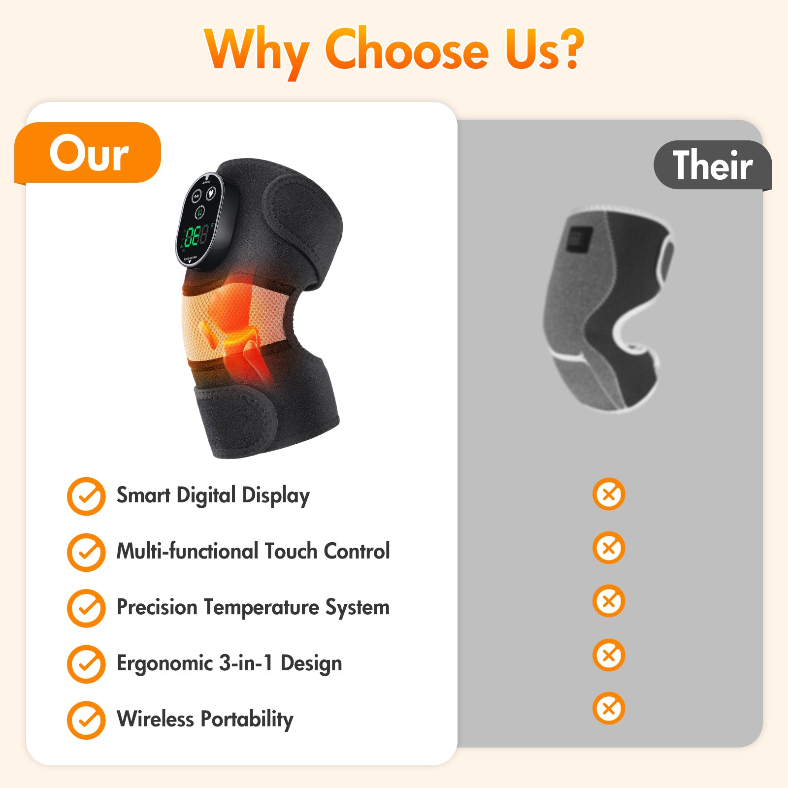 Long time sitting or standing can lead to poor leg and knee circulation, while excessive exercise may cause knee discomfort or even injury. Your knees are vulnerable and deserve proper care! Our knee massager delivers a gentle, soothing massage to the knees and surrounding areas, helping you stay active with ease and confidence.
