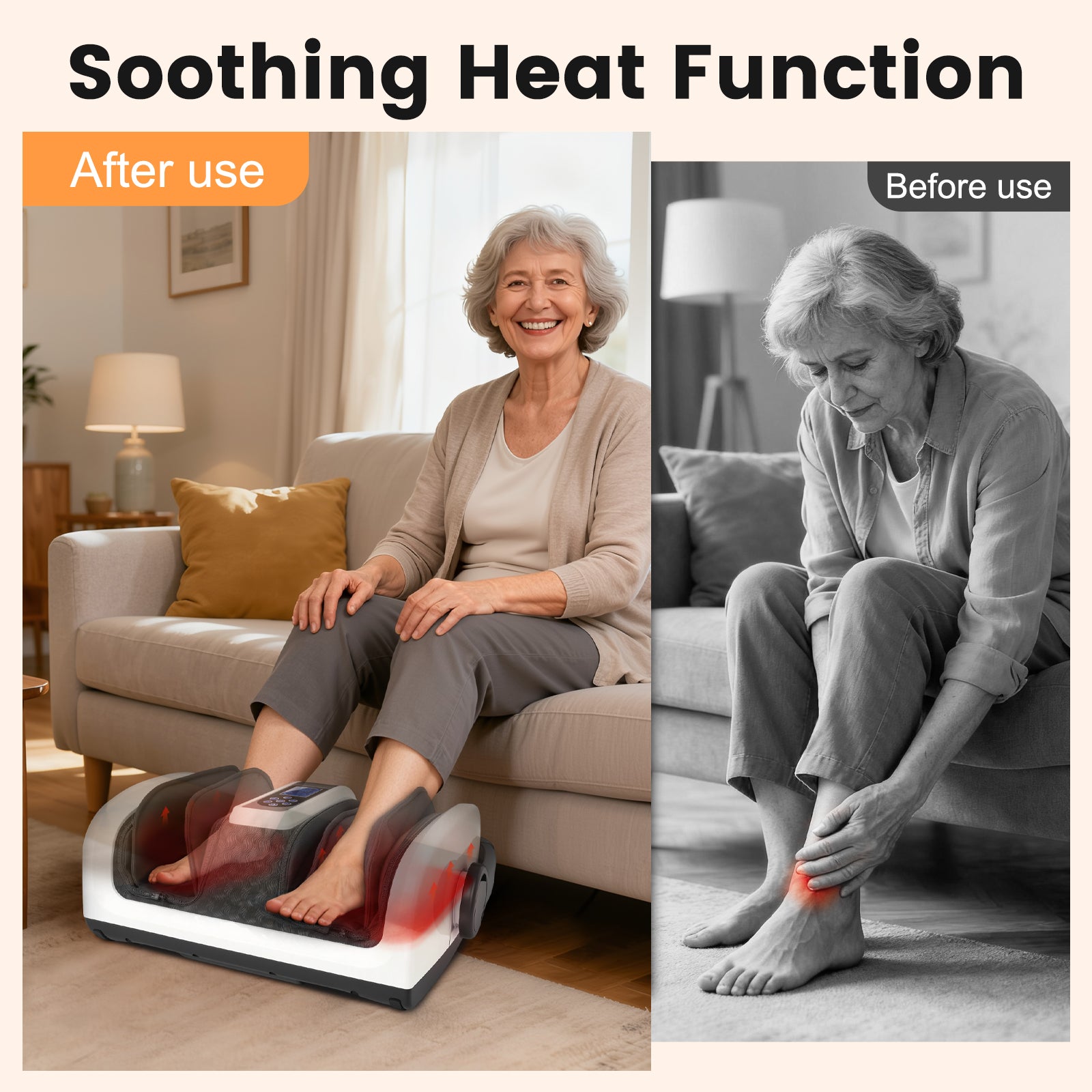 Foot Massager with 3D shiatsu massage. Rollers target acupoints, kneading helps relieve foot and calf pain. Choose from 3 heat levels to warm muscles and improve circulation. 2 intensity modes and reversible directions for custom use. Removable washable cover for easy cleaning. Lightweight and portable for home or office. Perfect for gifting or personal use.