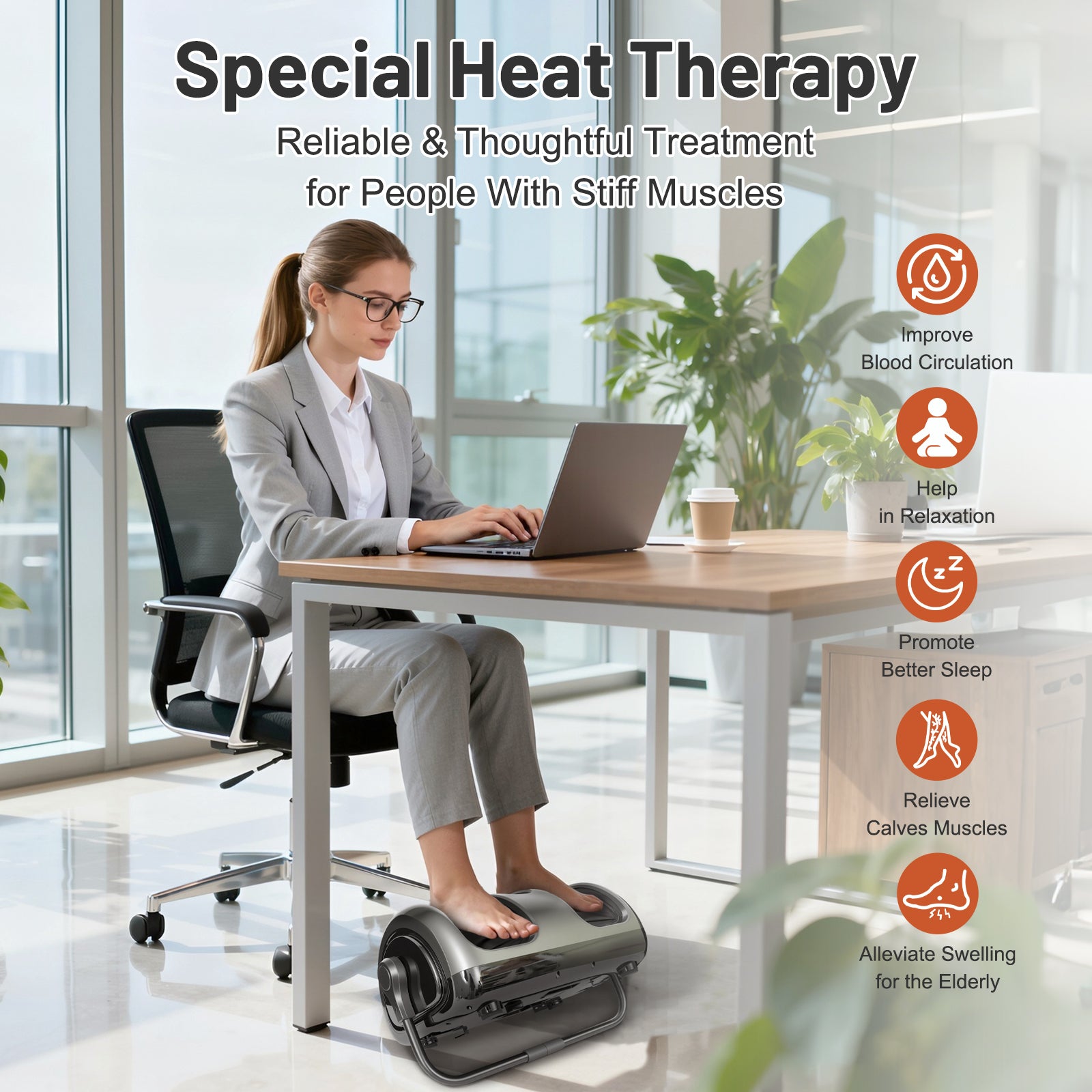 Your Personal Foot Massage Therapist! Experience professional-level relief with Foot Massager's innovative 3D shiatsu massage technology. Foot Massager's bottom rollers target key acupoints with precise pressure, while Foot Massager's side kneading mechanisms work simultaneously to mimic authentic, kneading, pressing, rubbing, and pushing, effectively easing discomfort from plantar fasciitis and calf soreness.