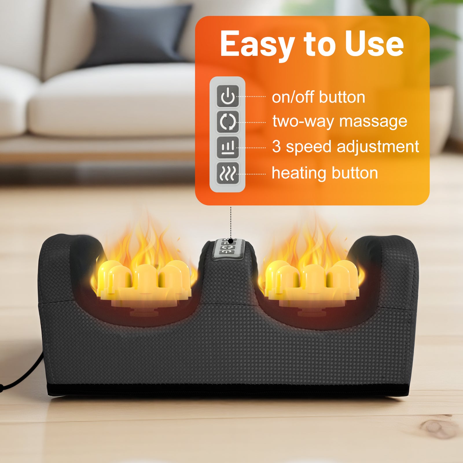 This leg massager brings professional relief by combining shiatsu techniques with soothing heat. It works like real hands to target your soles and calves, helping to ease foot pain, muscle tightness, and discomfort.Choose from three massage modes and adjust the strength to fit your needs. The shiatsu foot massager is lightweight and works as a powerful calf massage machine, perfect for home, office, or travel.Ideal for recovery, daily relaxation, or as a thoughtful gift, this foot massager offers a warm, comforting experience for everyone.
