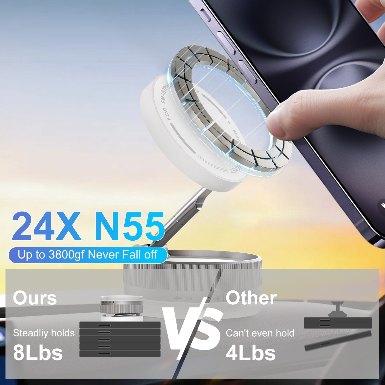 Phone Holders for Your Car Magnetic, 361 Degree Rotation, Air Vent Magnetic Phone Mount, Upgraded Strongest Magnet Power, Compatible with iPhone, Samsung, Google Pixel, Motorola Moto, White