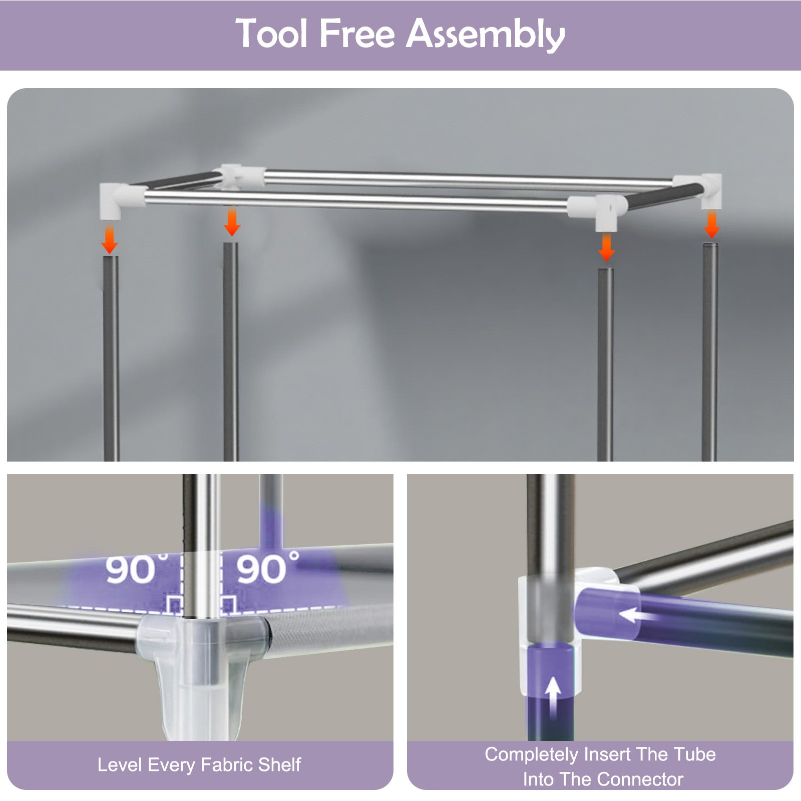 This fabric clothes storage combines practicality and convenience, making it an ideal storage solution for compact spaces. Its space-efficient dimensions perfectly fit small rooms, apartments, or dorms, maximizing storage while keeping your space tidy. The full-cover dustproof design with zipper closure effectively shields clothes from dirt, and the removable cover allows easy cleaning. The innovative T-zipper enables quick access to items without fully opening the wardrobe. Whether for daily use or temporary storage, this closet storage delivers an organized, clutter-free living experience.