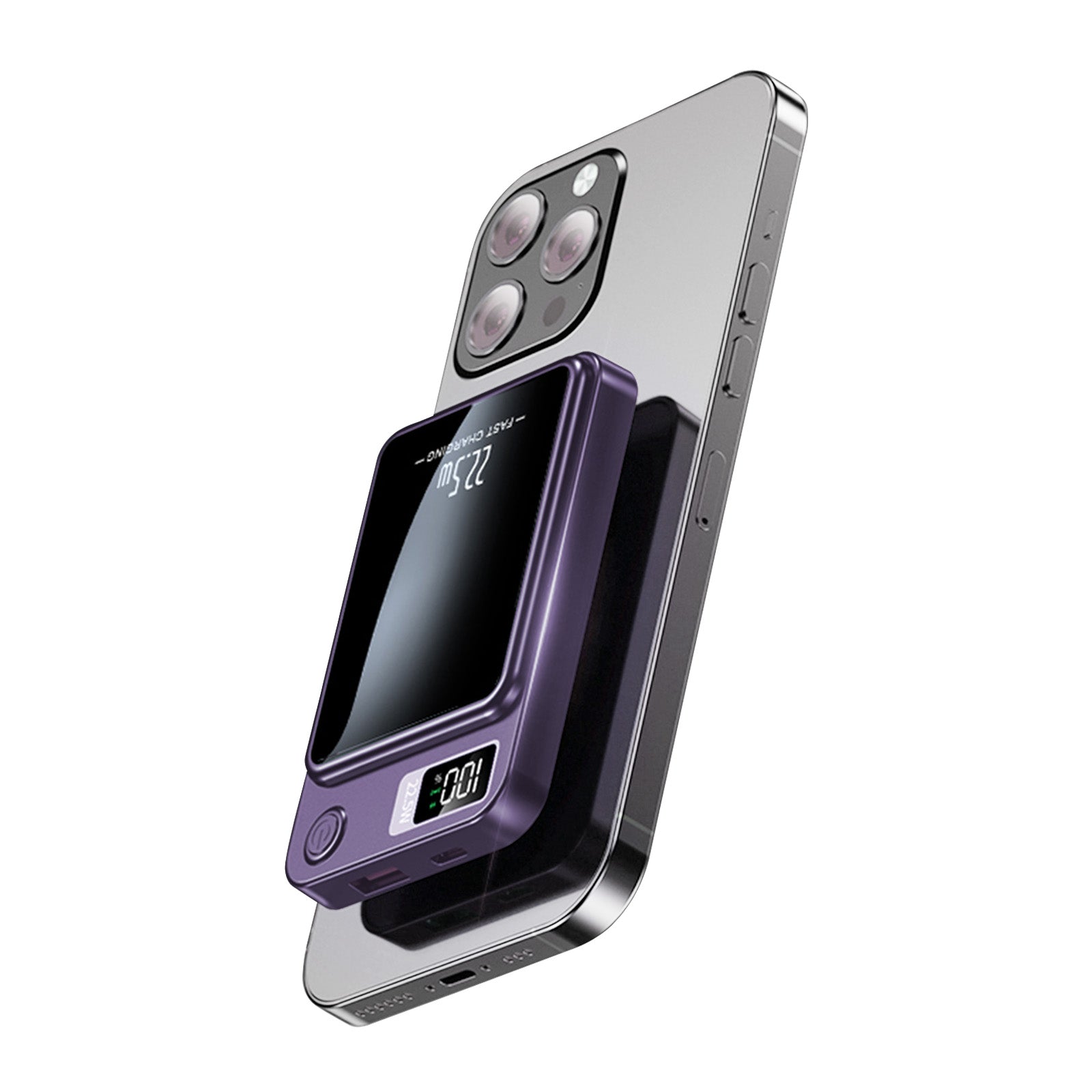 Power Bank, 10000mAh Wireless Power Bank with LED Power Display, 22.5W Fast Charging Battery Pack, Compatible with iPhone 8 and above series,Purple