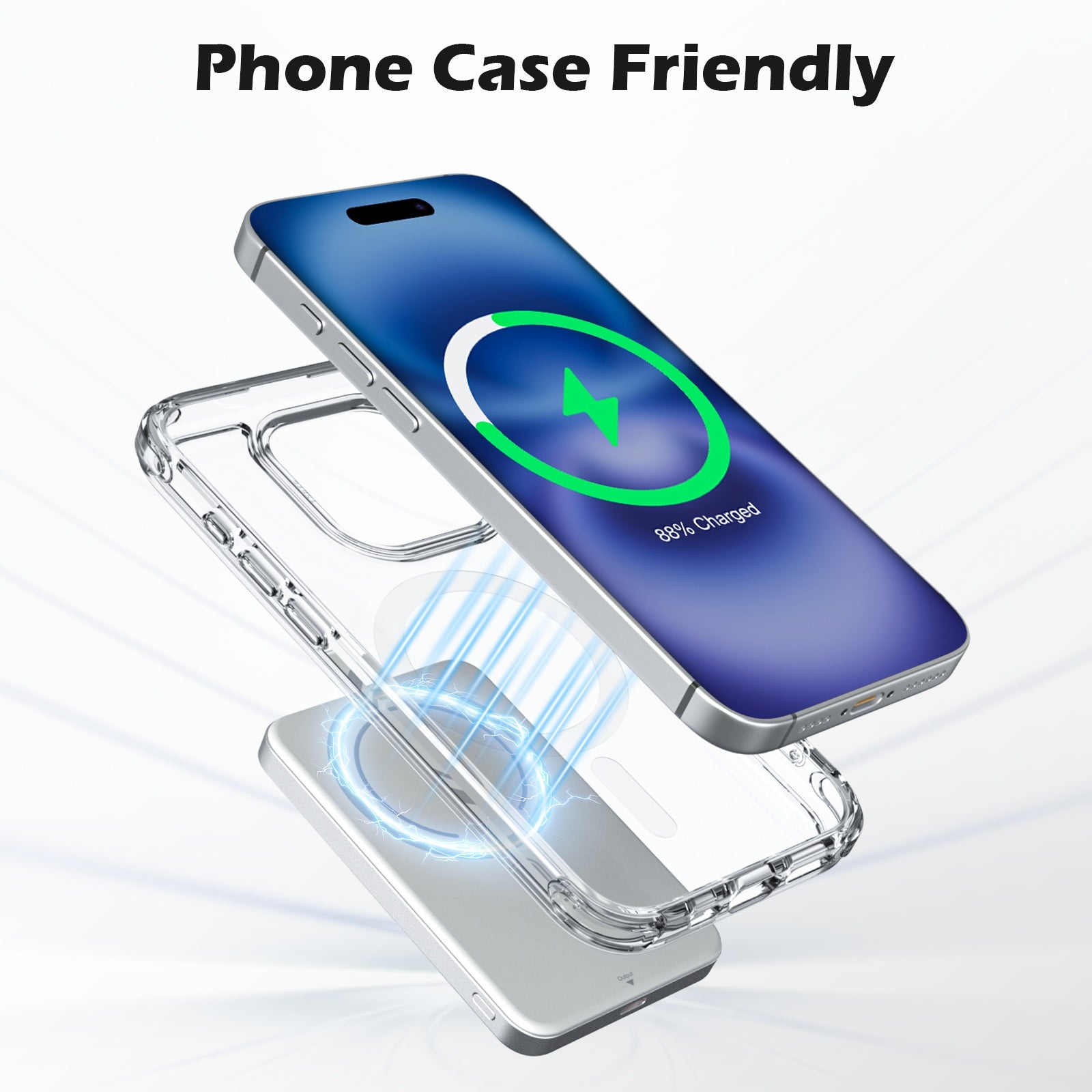 Tired of bulky power banks weighing your bag down or loose cables messing up on-the-go charging? Try our ultra-thin magnetic power bank¡ªit works for iPhone 17 16 15 14 13 12 and other Qi devices, so you¡¯ll love how it fits easily in your pocket or small bag, no heavy gear needed; it snaps to your phone in a second for hassle-free use, plus fast wireless charging for quick top-ups and wired charging with an included USB-C cable for rushes, plus safety features to prevent overcharging or overheating¡ªperfect for commuting, shopping or traveling to solve all your on-the-go charging troubles.