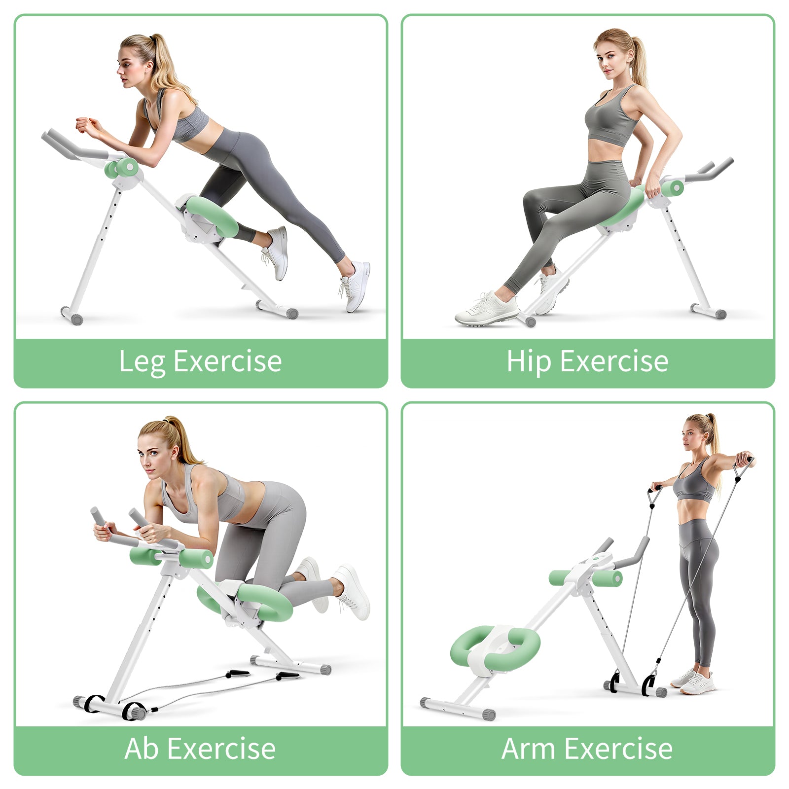 Rican Ab Machine, Foldable Abdominal Exercise Machine, Ab Workout Equipment with LCD Monitor, Abdominal Exercise Workout with Resistance Bands, Green