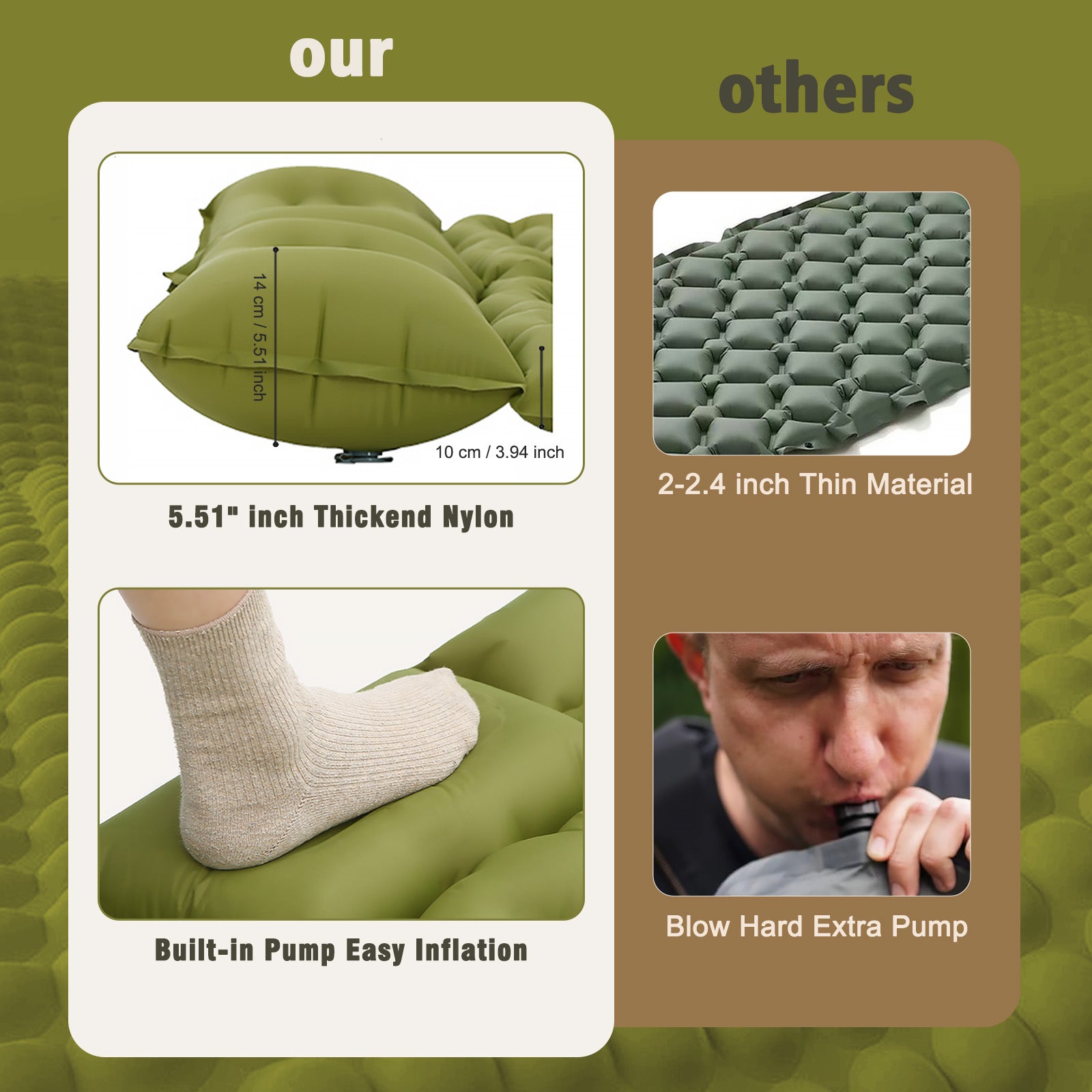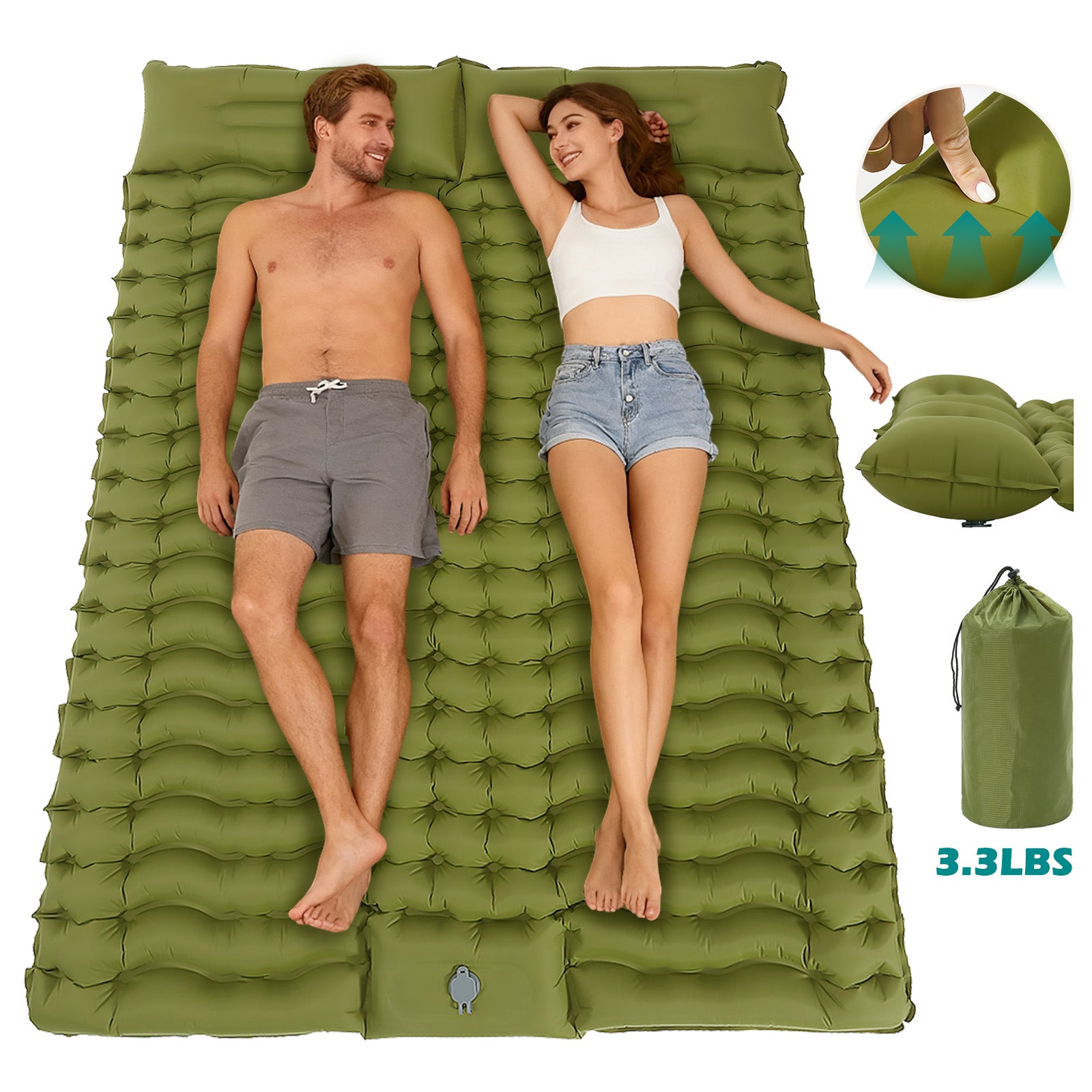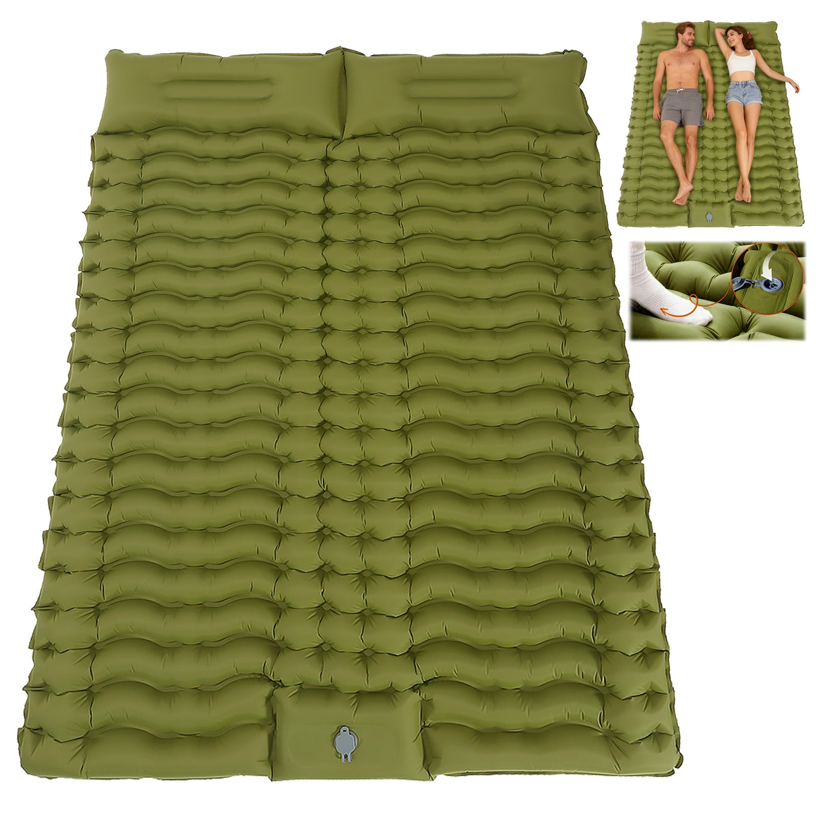 Rican Double Camping Sleeping Pad, Inflatable Double Sleeping Pad, Self Inflating 4" Sleeping Mat with Pillow Built-in Foot Pump, Portable Camping Mat for Backpacking, Hiking, Traveling, Tent