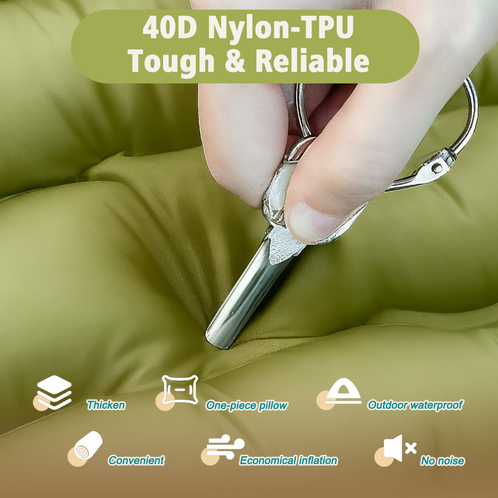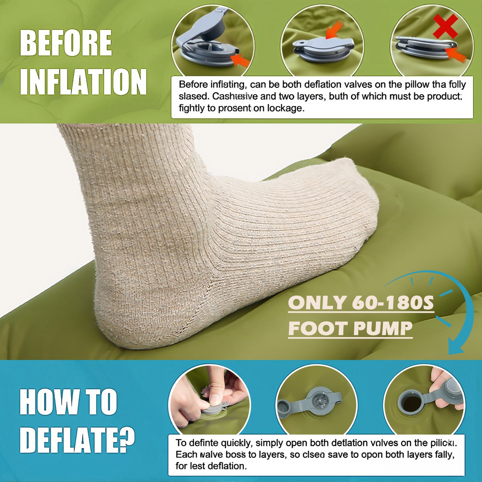 Rediscover comfort in the great outdoors with our double-sized water wave pattern inflatable sleeping pad. Designed with an integrated inflatable pillow and a built-in foot pump, this ultra-lightweight pad supports up to 440 lbs, perfect for camping, backpacking, and outdoor adventures.