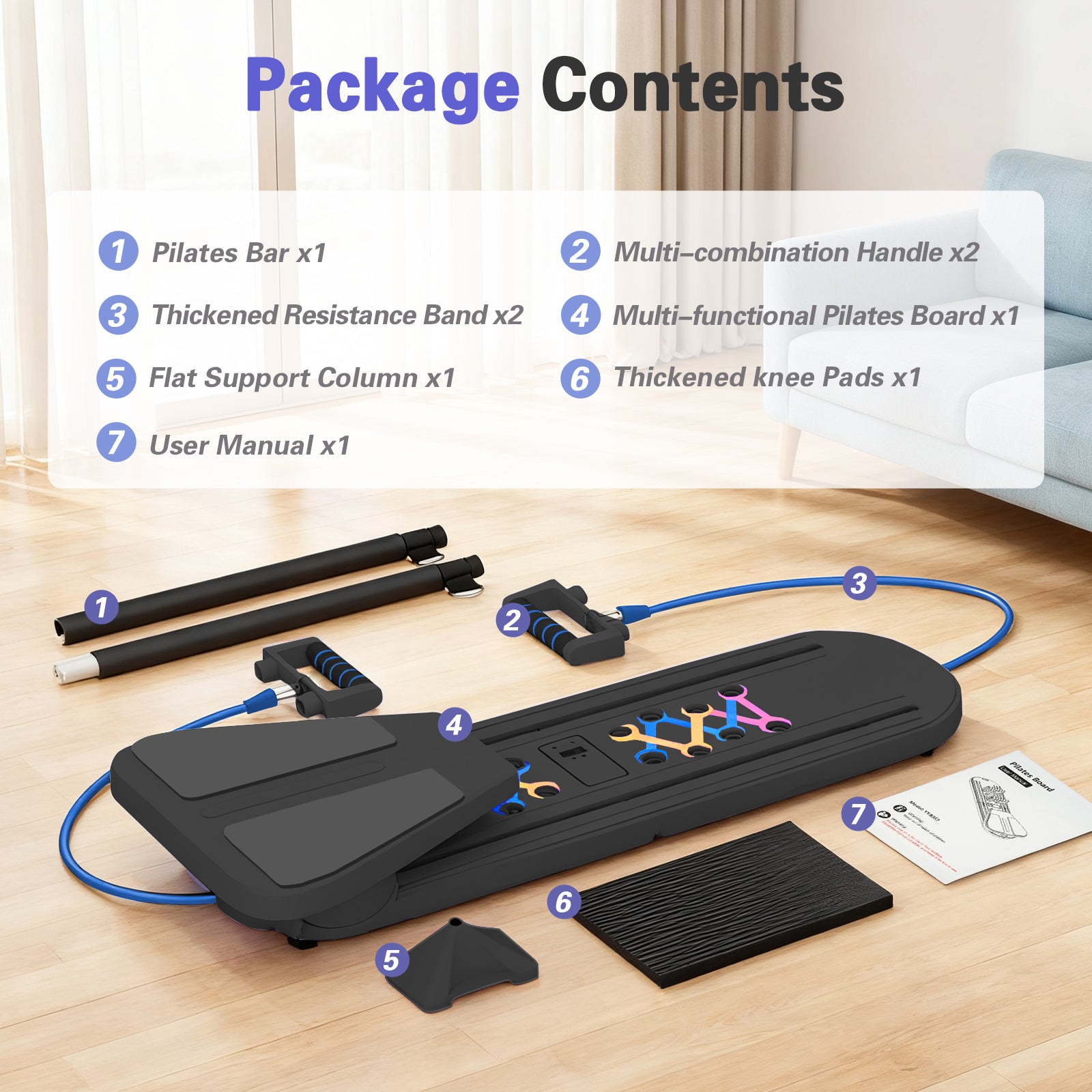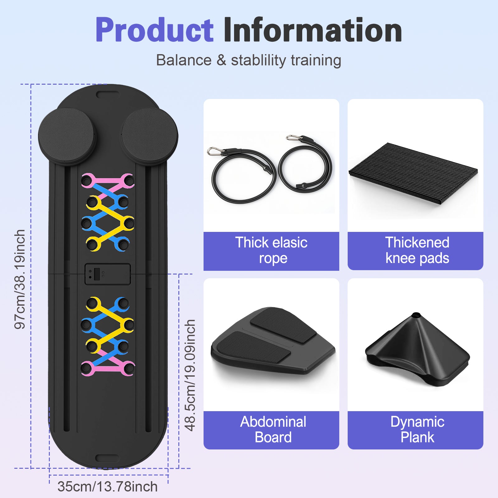 RICAN Foldable Pilates Board, Pilates Reformer Set, 15-in-1 Multifunctional Abdominal Board, Adjustable Push-Up Handles, Full Body Workout Equipment for Home, Black