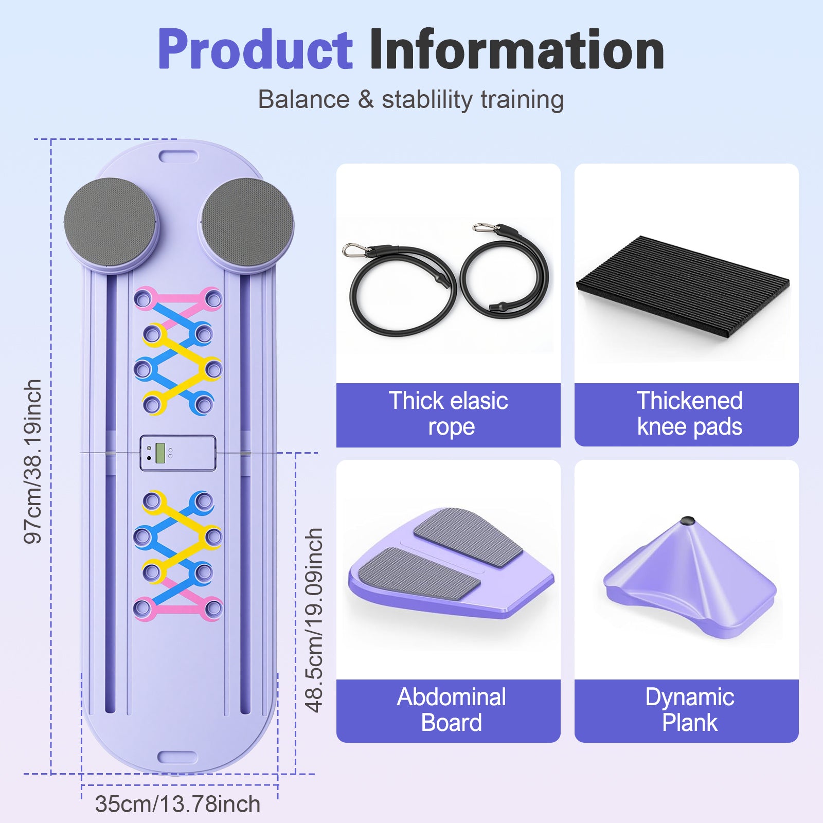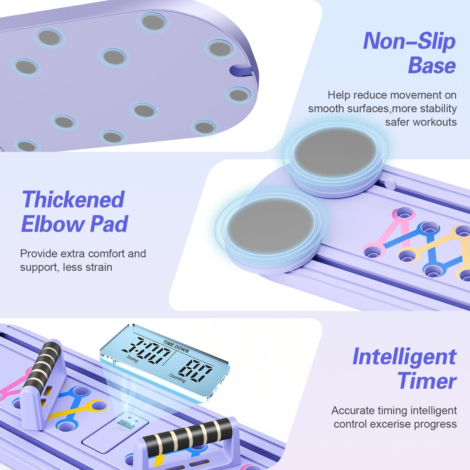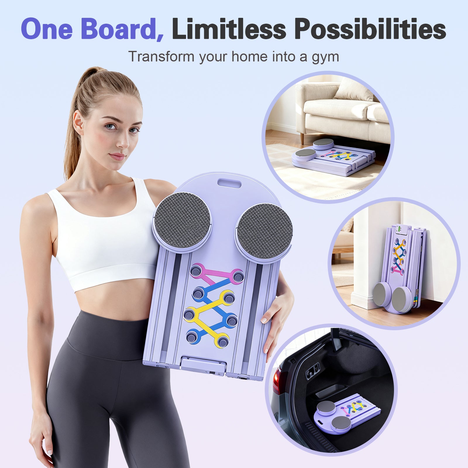 RICAN Foldable Pilates Board, Pilates Reformer Set, 15-in-1 Multifunctional Abdominal Board, Adjustable Push-Up Handles, Full Body Workout Equipment for Home, Purple