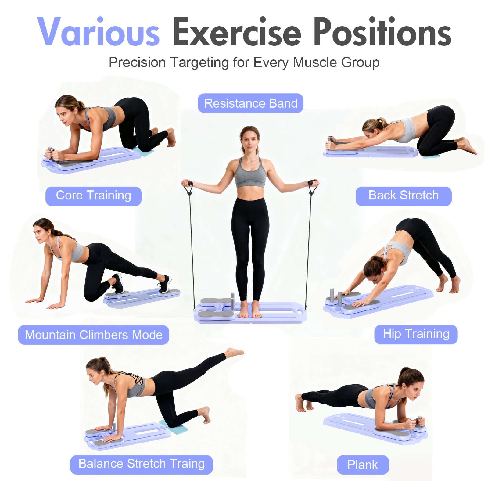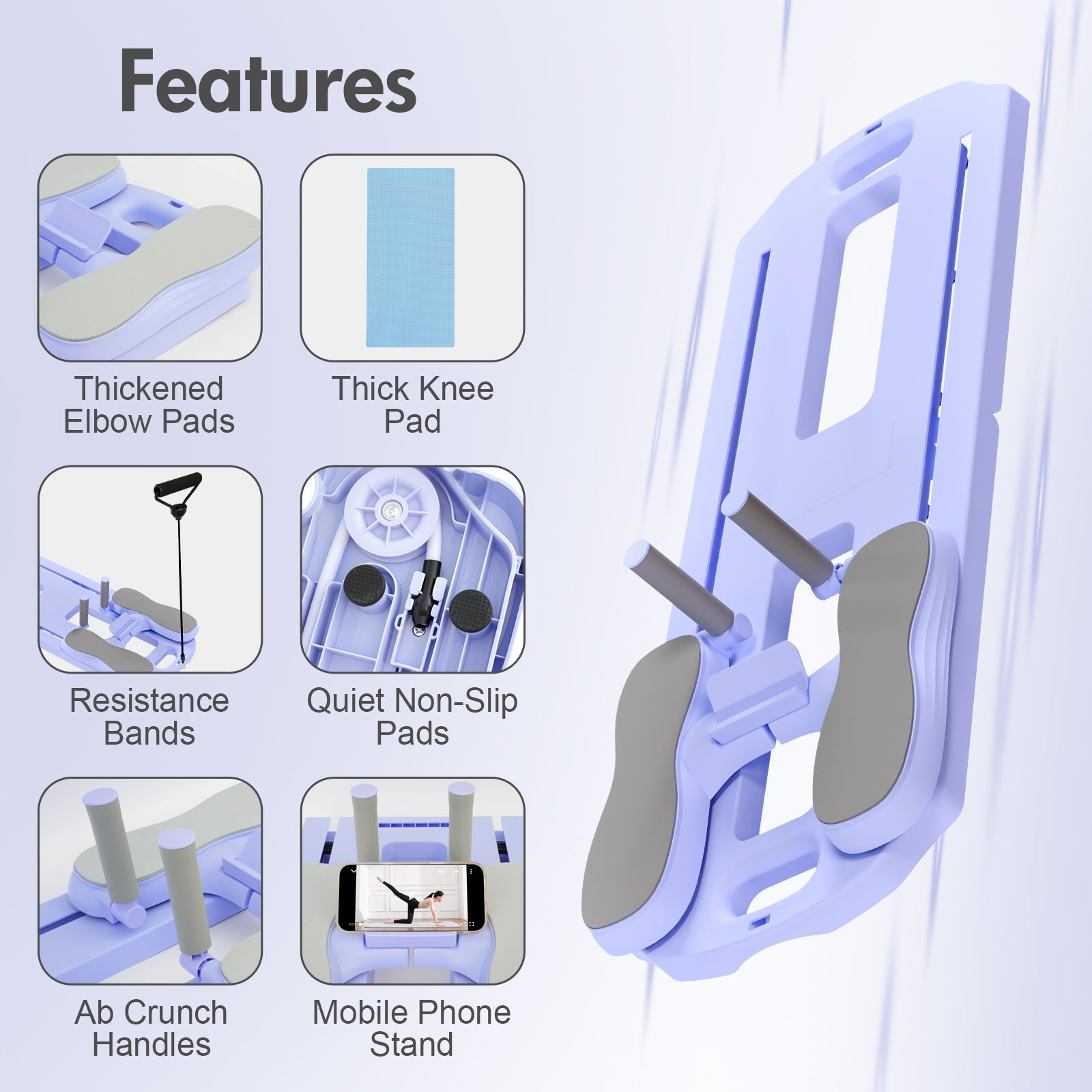 Rican Pilates Board, Foldable Ab Board, Multifunctional Abdominal Board for Home, 300 lbs Abs Workout Equipment with Knee Pad, Portable Pilates Reformer for Full Body Workout, Purple
