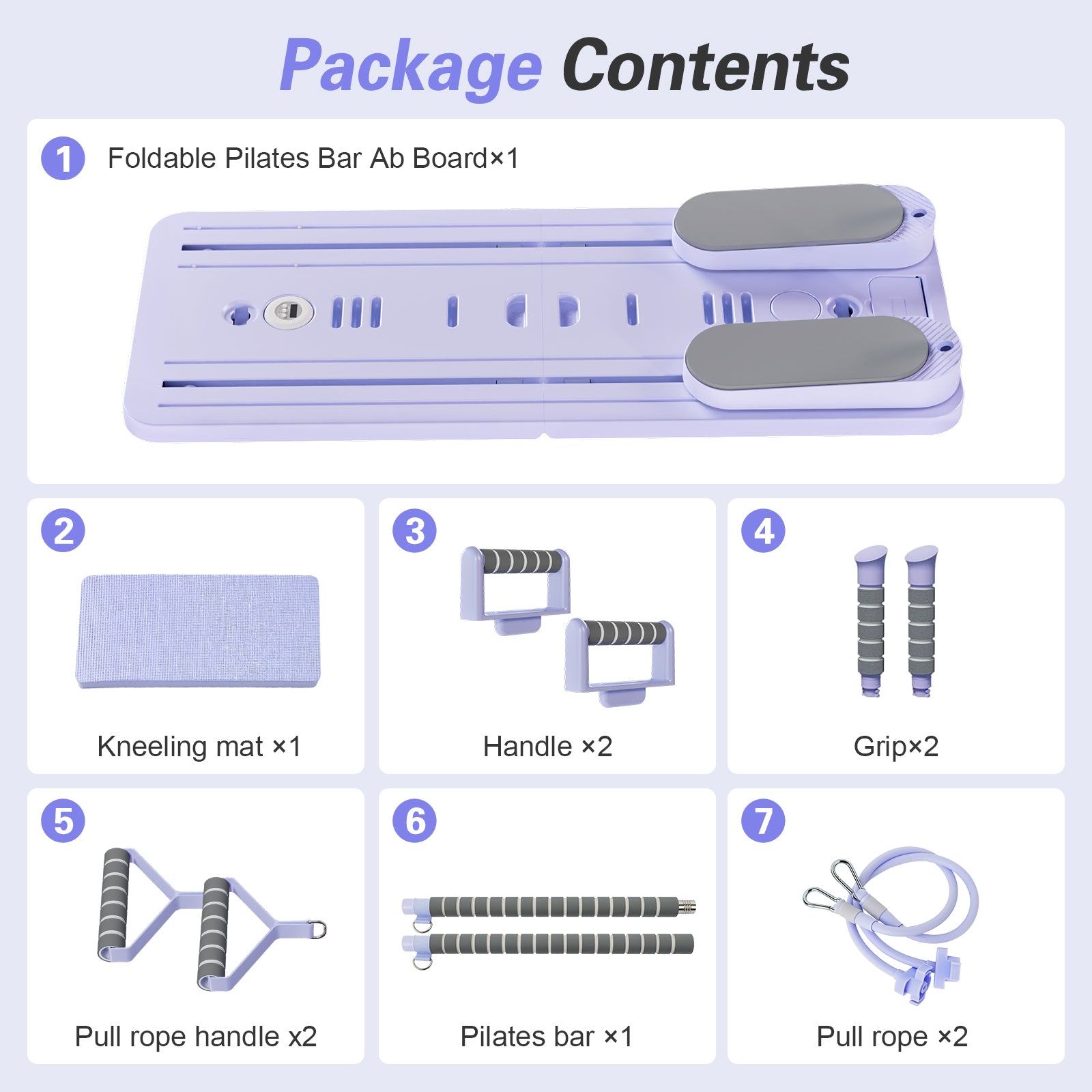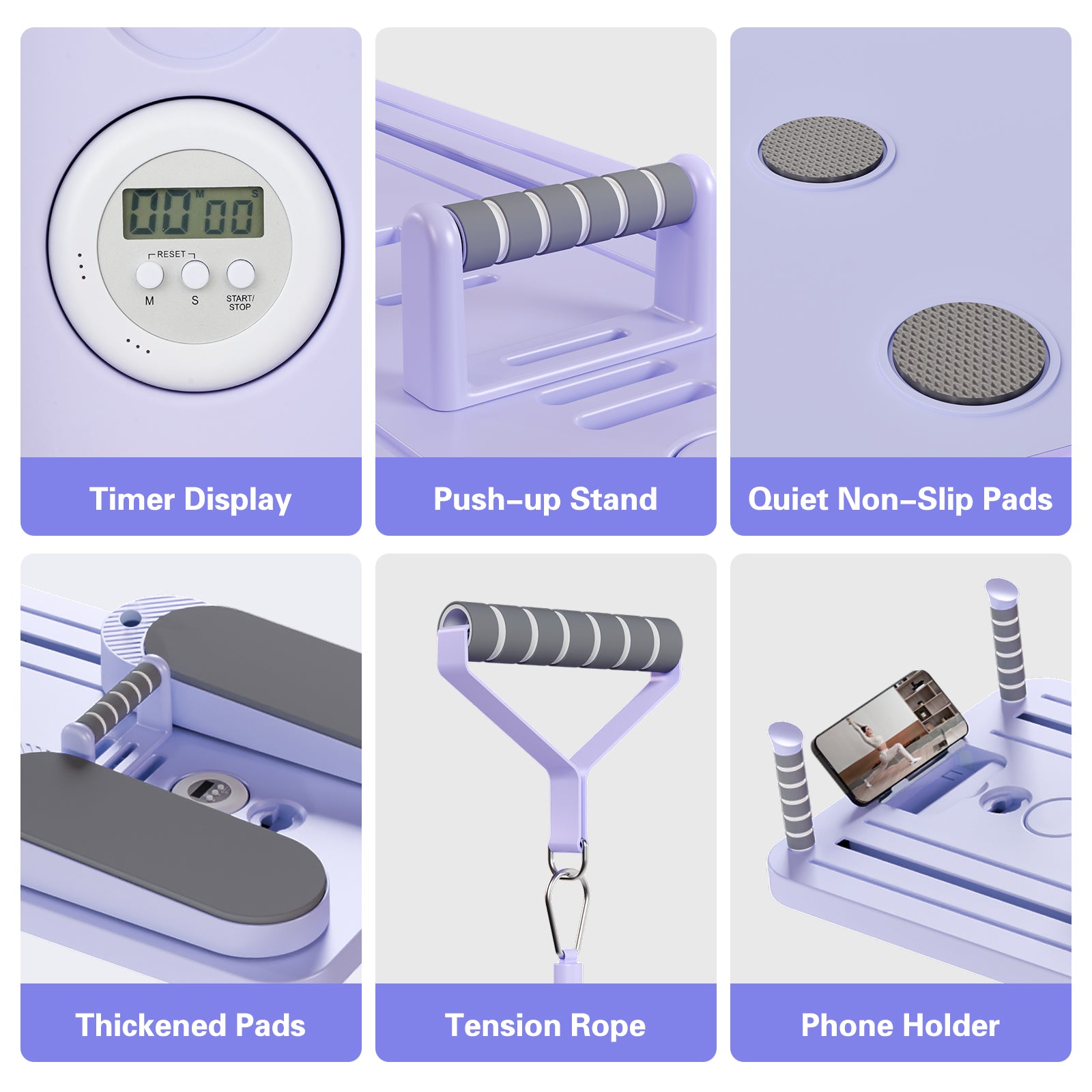 Rican Pilates Board, Portable Ab Board, Multifunctional Abdominal Board, Foldable Pilates Reformer Set, Sliding Equipment for Home with Timer, Purple