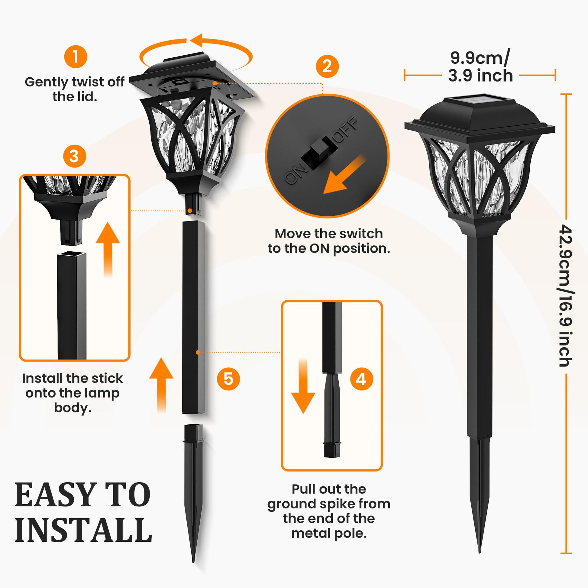 - IP65 Waterproof and Tough, can withstand all kinds of weather all round the year. You can install this solar lights anywhere you like and enjoy the colorful outdoor solar garden lights.