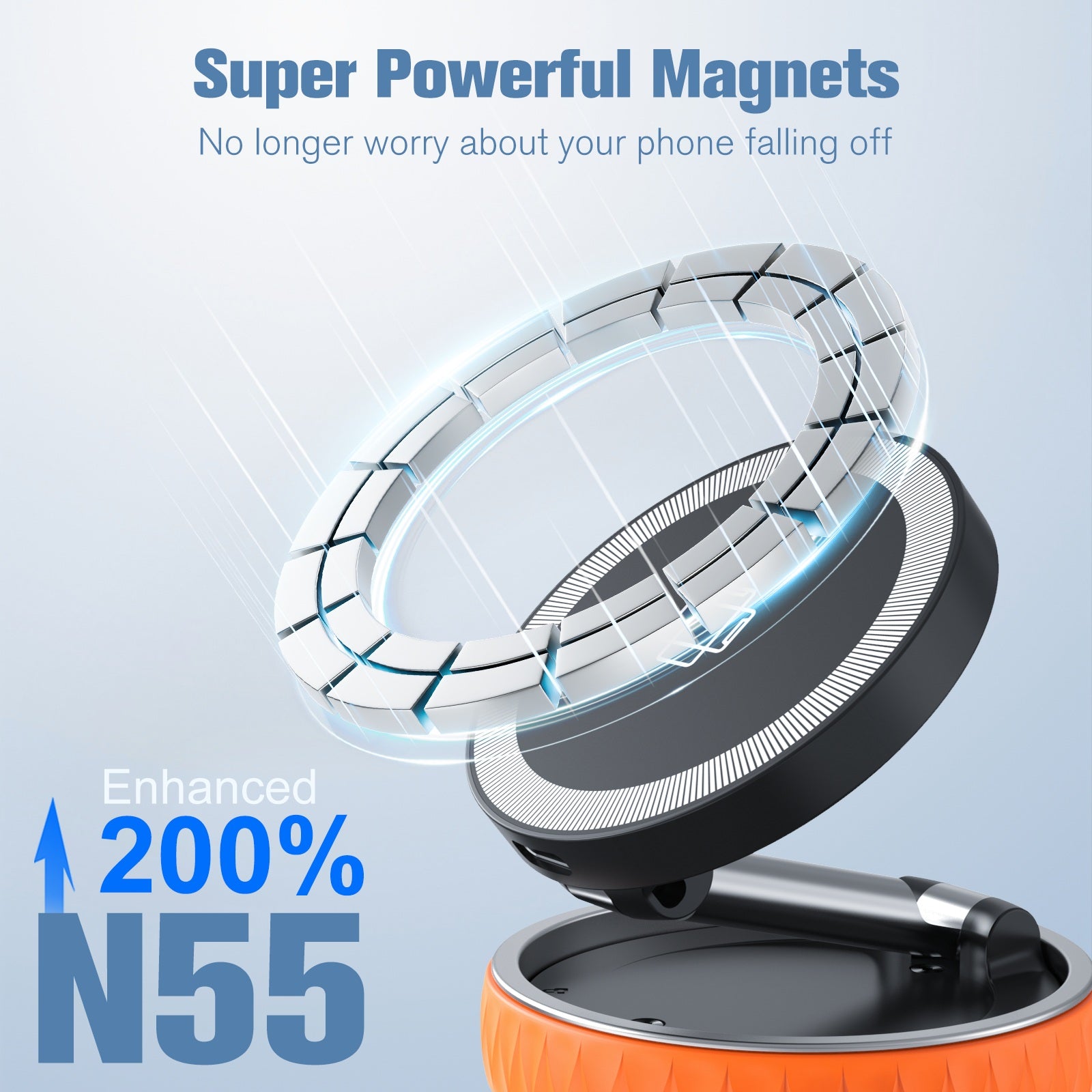 Wireless Car Charger, Ultra Magnetic Phone Holder for Car Dashboard, 15W Charging, Cell Phone Holder Charger, Car Accessories for iPhone 17 16 15 14 13 12 (Orange)