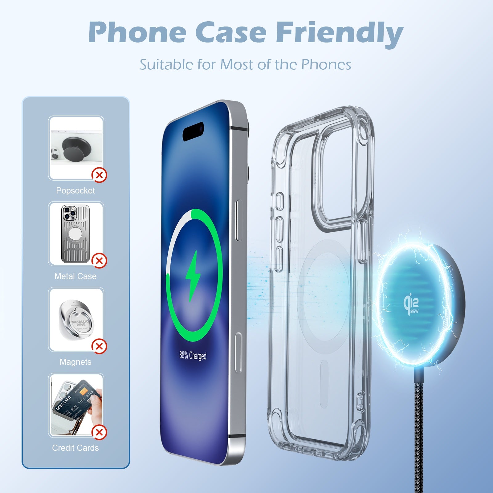 Wireless Charger for iPhone, 25W Phone Charger Compatible with iPhone 17 16 15 13 14 12 Series, Charging Pad Compatible with AirPods 4 3 2, Ideal for Travel Home Office, Black(1 Pack)