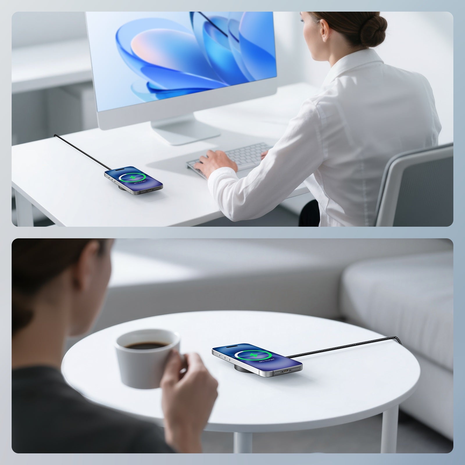Fed up with tangled cords and slow charging? Our wireless charger changes how you charge¡ªsleek, powerful, and safe, it fixes those charging headaches. Scroll down to see why it¡¯s a must-have for phones, earbuds, or other wireless gear. Plus, it¡¯s FCC-compliant, works with other electronics, and won¡¯t interfere¡ªcharge without hassle.