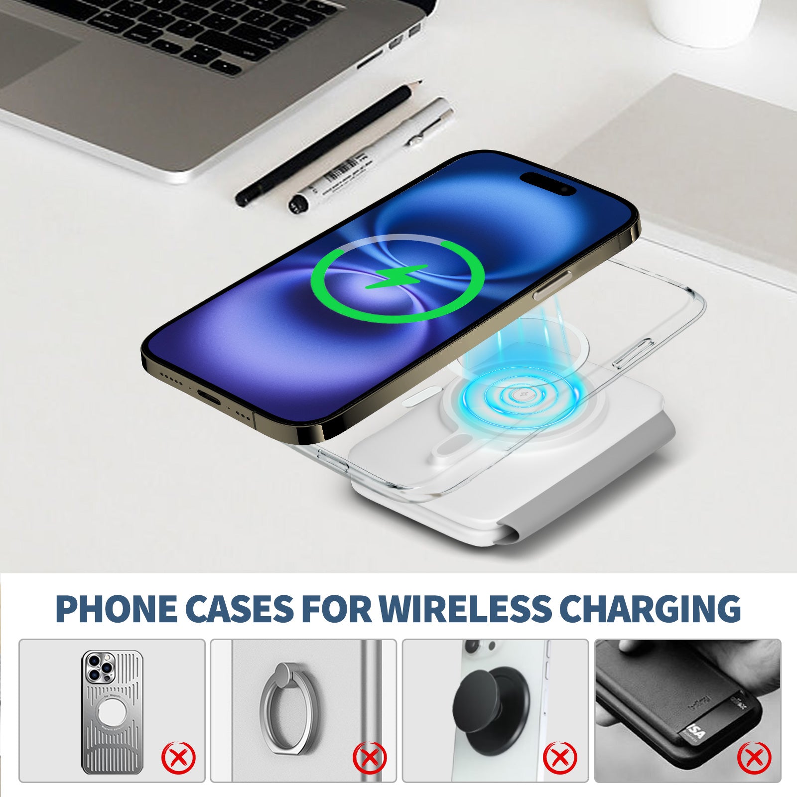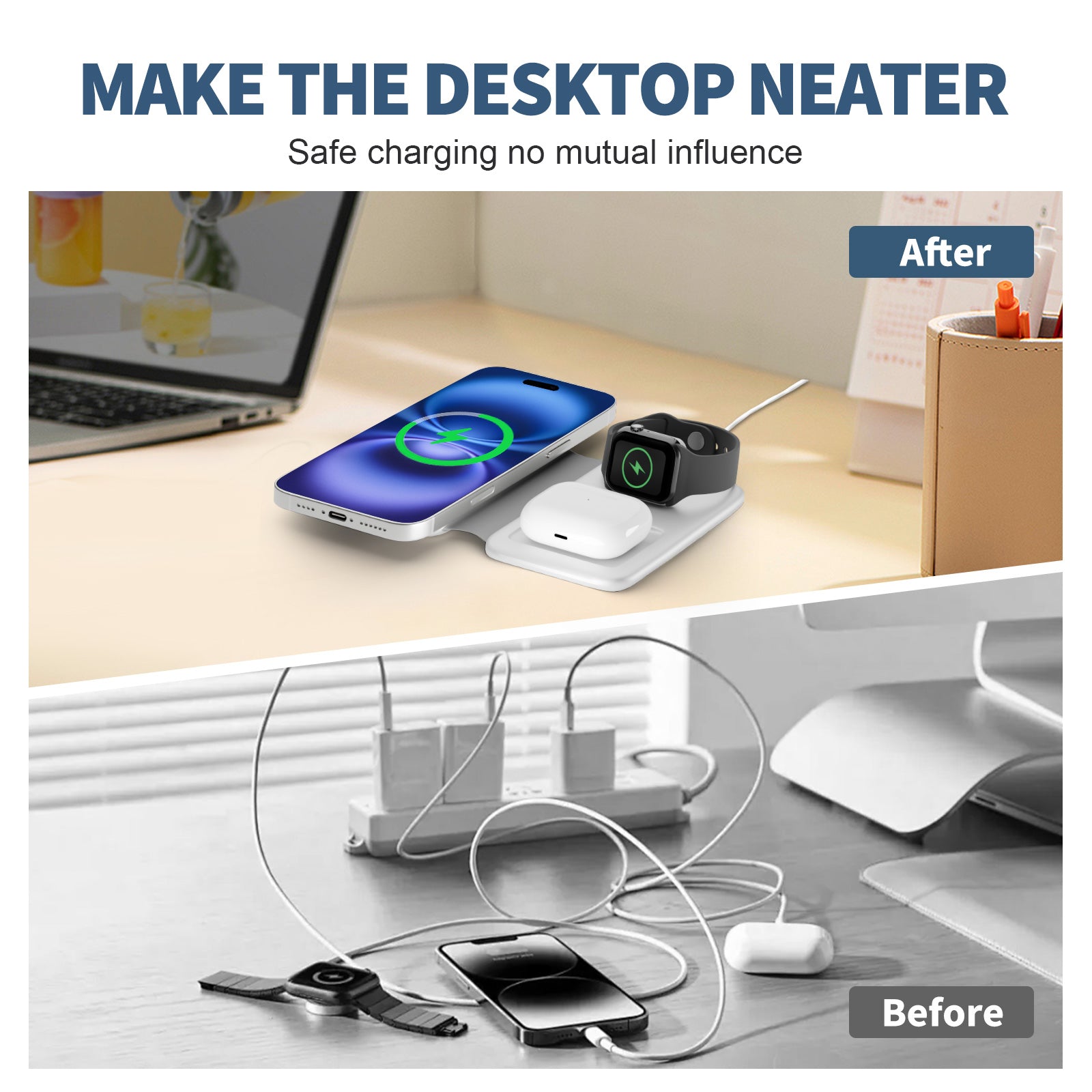 Tired of juggling chargers for your devices? This magnetic wireless charger simplifies things¡ªtough material for daily use, cuts cord clutter, and folds easily for on-the-go. Works with all devices, plus fast charging and safety features.