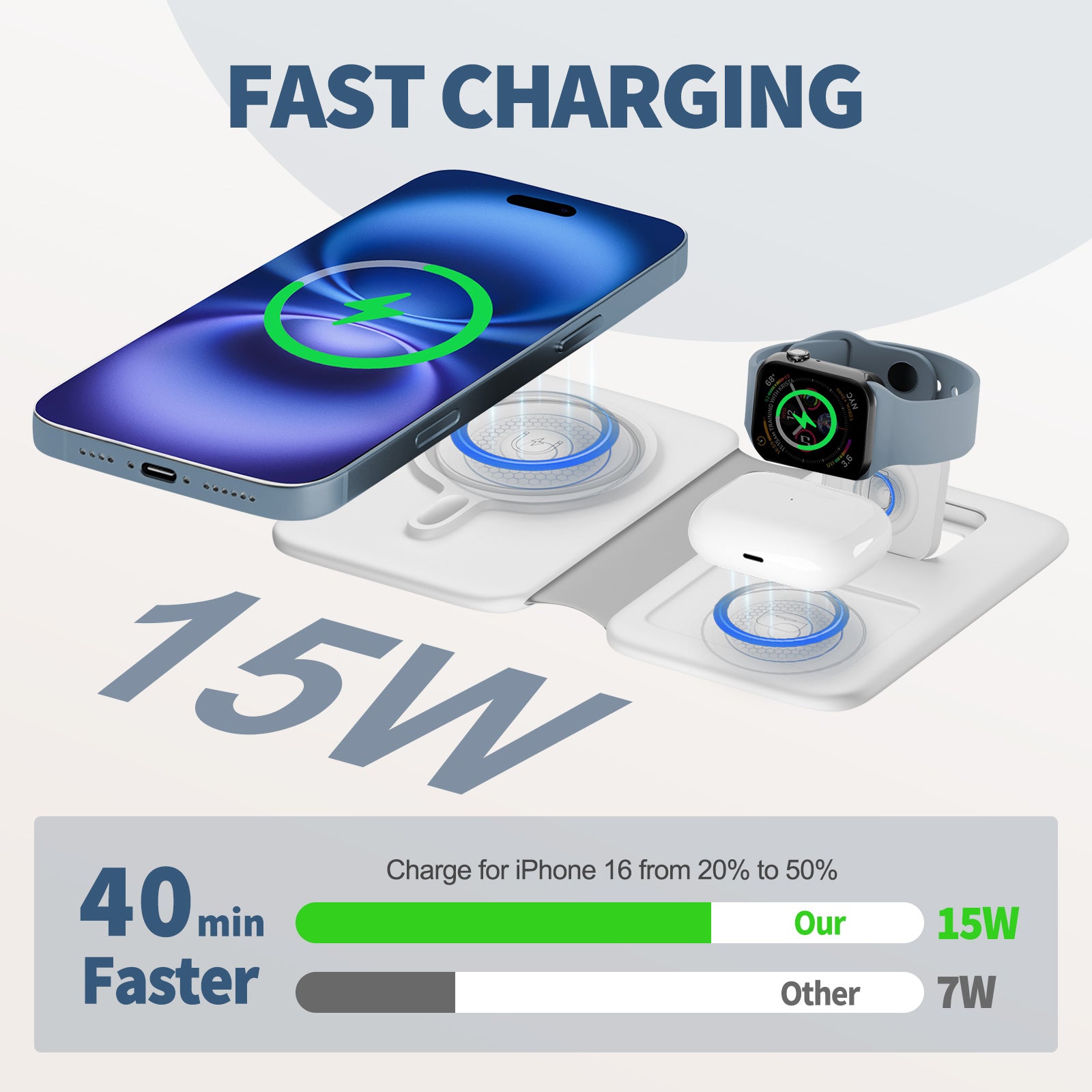 Wireless Charger for iPhone, 3 in 1 Magnetic Charging Station for Apple Devices for iPhone 16 15 14 13 12 Pro Max Plus - Foldable Charging Pad for Apple Watch Series Airpods 4 3 2 Pro, White
