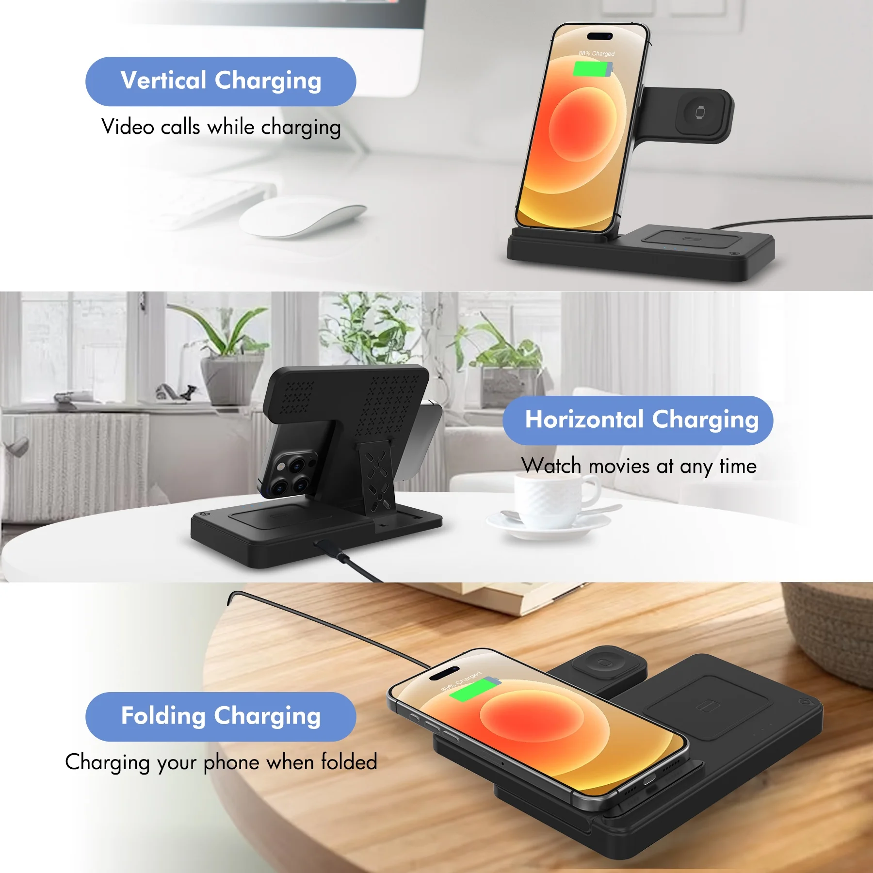 Wireless Charger,Wireless Charging Station Magnetic Fast Charging Stand Compatible with iPhone 17 16 15 14 13 12 11 Pro Max Plus XS XR X 8, For Apple Watch and AirPods 3 2 Pro